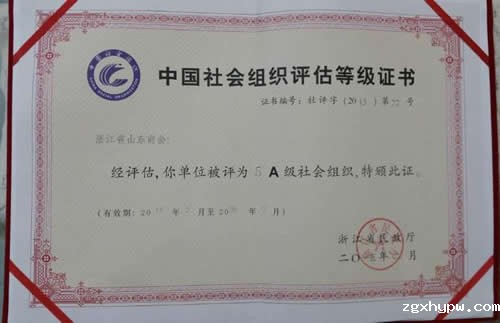 浙江省民政厅2014年社会组织评估结果于在2015年1月28日揭晓,成立仅三年的我会荣获中国社会组织评估最高等级——5A级社会组织荣誉称号(评估结果有效期5年)。这是外省在浙商会获得的最高级别荣誉。标志着我会建设跃上新台阶,已然进入浙江省一流社会组织行列。数据显示,浙江省2009年启动社会组织评估工作以来, 10万多家社会组织中仅有77家获得5A级社会组织荣誉称号。 (来源:zgxhypw秘书处。图文:贾俊奎。)