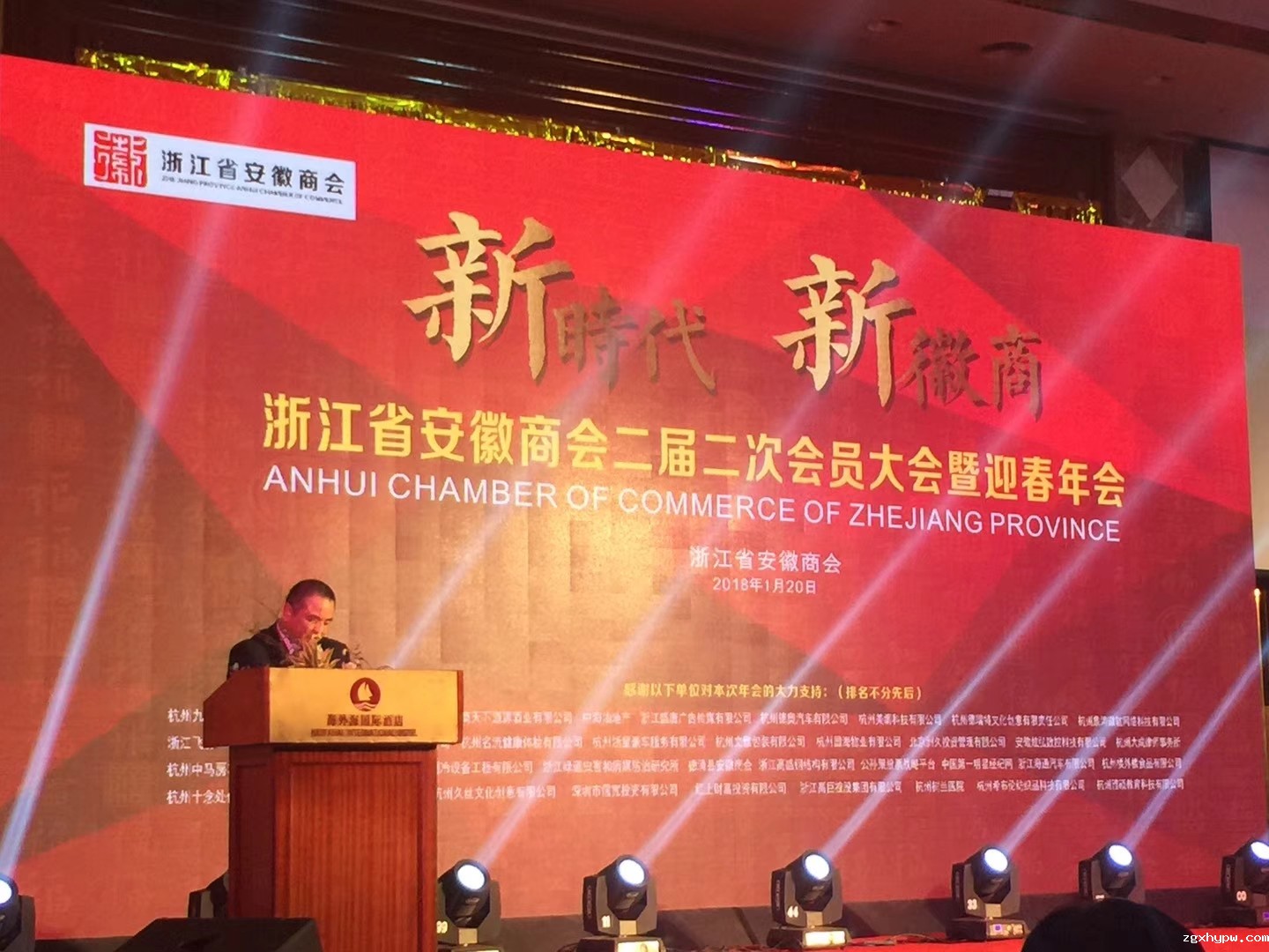 2018年1月20日,浙江省安徽商会二届二次会员大会暨迎春年会在杭州海外海国际大酒店隆重举行。受会长、党委书记刘绪刚委托,我会副会长、专职秘书长刘强到会祝贺。