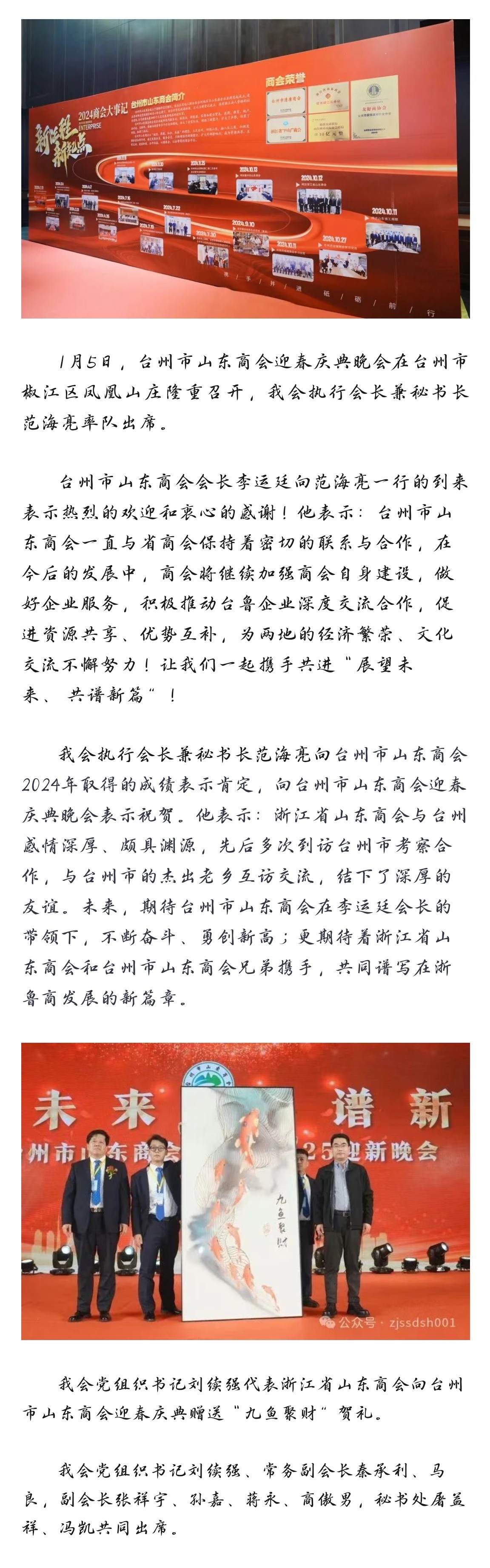 我会执行会长兼秘书长范海亮率队出席台州市山东商会迎春庆典晚会
