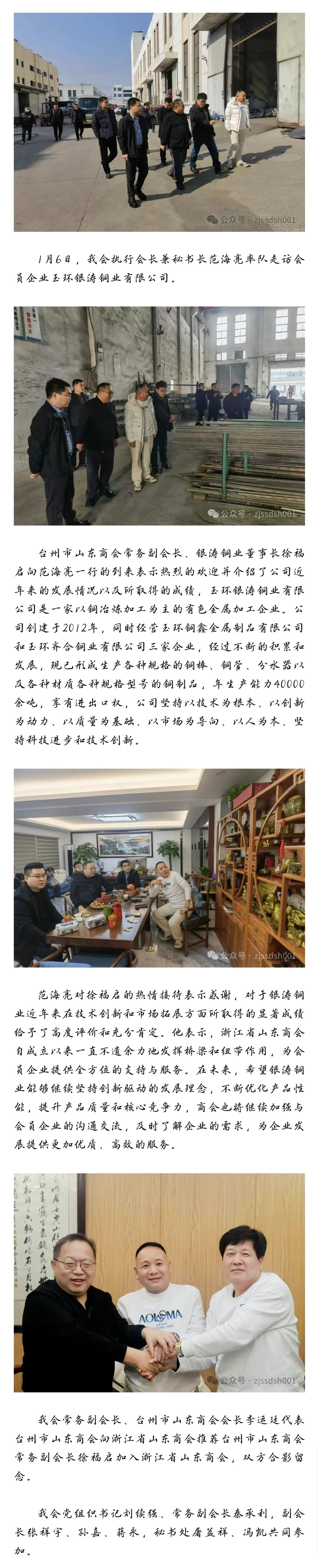 我会执行会长兼秘书长范海亮率队走访会员企业玉环银涛铜业