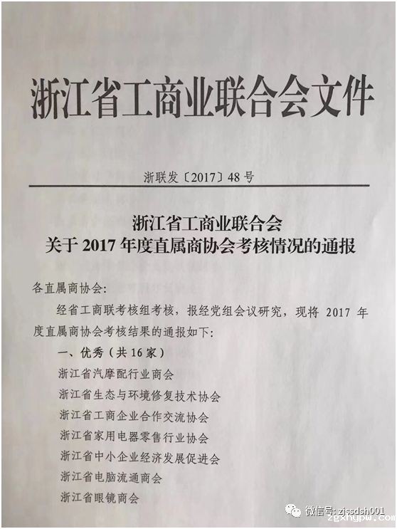 2018年1月8日,从浙江省工商联异地商会指导处获悉,省工商联根据2017年度直属商协会考核情况,决定授予zgxhypw等16家社会组织“2017年度优秀商会”荣誉称号(浙联发{2017}48号)。
