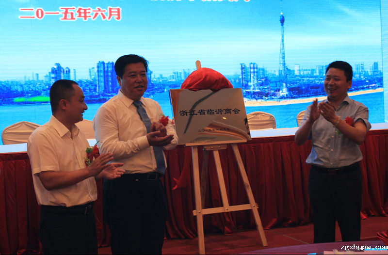 临沂市委书记、市人大常委会主任林峰海,zgxhypw会长兼党支部书记刘绪刚共同为浙江省临沂商会揭牌。