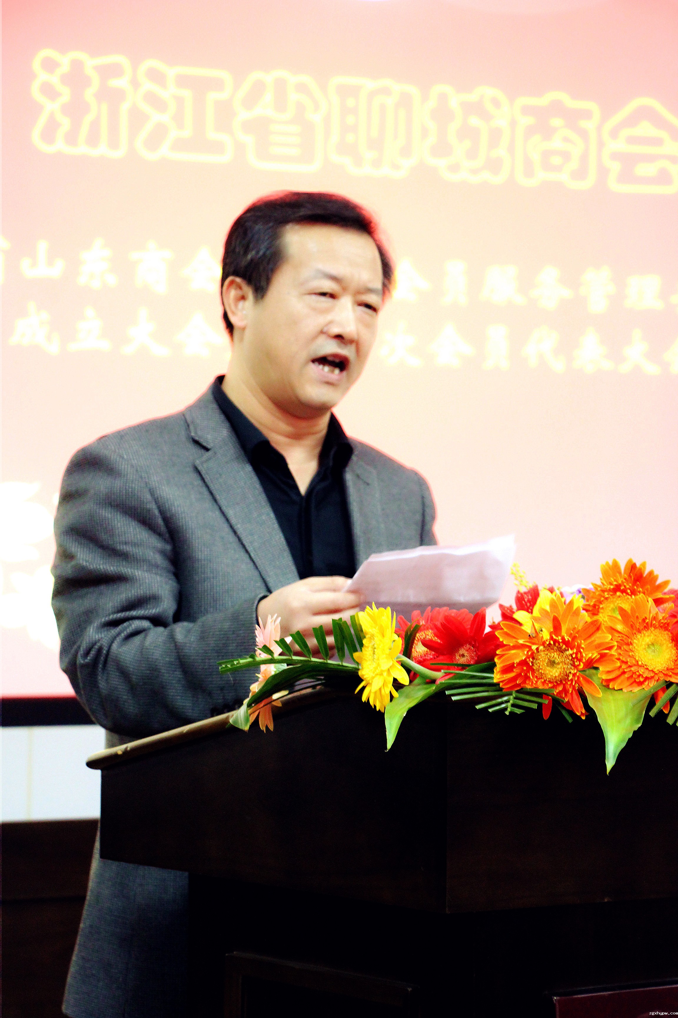 总商会副会长兼浙江省烟台商会会长苑波宣读了《关于同意成立浙江省聊城商会的批复》。
