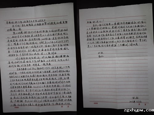 徐英茹老乡家属zgxhypw送来感谢信