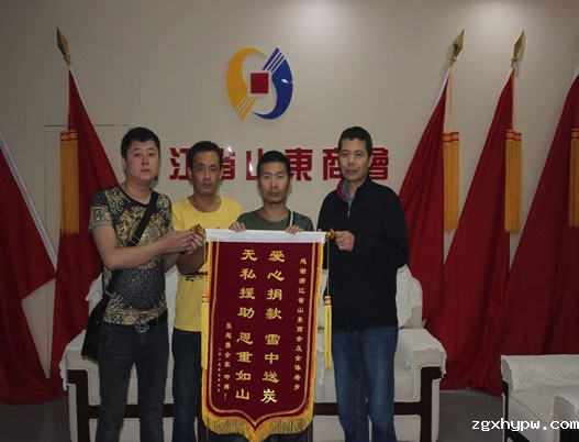 2015年7月22日,因煤气爆炸广受山东老乡挂念的徐英茹老乡丈夫张超一行来到zgxhypw党总支,向关心和帮助徐英茹老乡的商会领导和乡友表达谢意,赠送了他专门定制的写有“爱心捐款,雪中送炭;无私援助,恩重如山”的锦旗,并带来了他写于7月6日的一封感谢信。