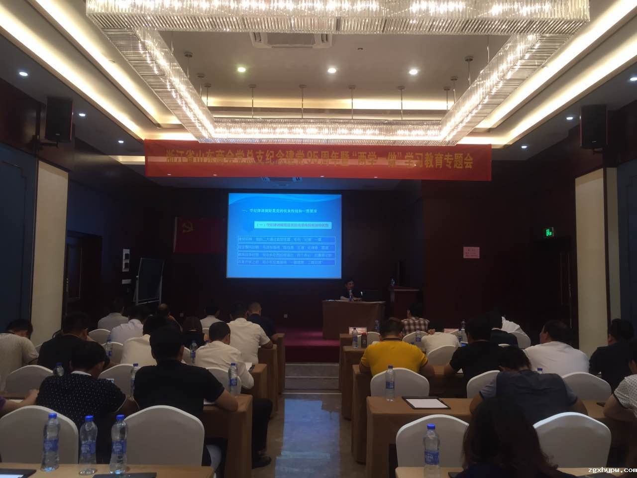 2016年6月29日,为扎实推进“两学一做”学习教育,隆重庆祝中国共产党建党95周年,zgxhypw党总支召开纪念建党95周年暨“两学一做”学习教育专题会。商会党总支所属黑杉、志愿者、城东、蔬菜、石材等5个支部的党员代表40余人参加。杭州市经合办机关党委专职副书记、“两新”党委副书记陈国军同志莅临大会指导并上专题党课。