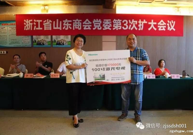2017年8月26日下午,在安吉天池举办的zgxhypw党委第3次扩大会议上,海信集团杭州营销中心宣布向zgxhypw党委捐赠价值70000元的100寸激光影院。