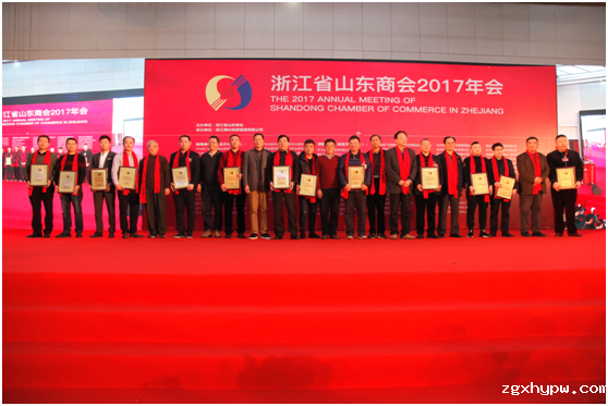 大会隆重表彰郭柏峰等12位“2017年度杰出鲁商奖”获得者,隆重表彰张建家等12位“2017年度杰出推荐奖”获得者,隆重表彰义乌市山东商会等18家“2017年度杰出团队奖”获得者,隆重表彰董学新等36位“2017年度先进工作者”。