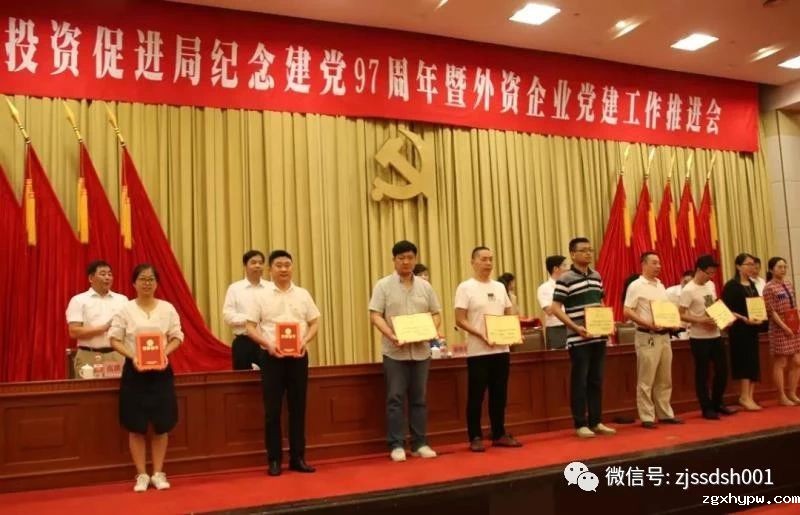 2018年6月28日下午,杭州市投资促进局纪念建党97周年暨外资企业党建工作推进会在杭州之江饭店千人会场举行。我会近50名党员与杭州市各级党组织负责人和党员约700多人参加大会。