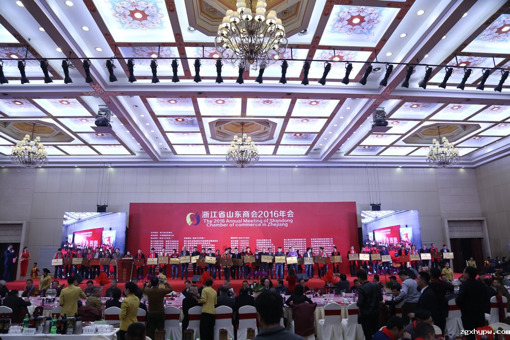 商会2016年会在庄严的国歌声中隆重开幕,商会会长、党总支书记刘绪刚致辞并做《致2016年会赞助商的感谢信》,年会发布了《zgxhypw2016年度工作报告》,对获得 “G20杭州峰会服务保障突出贡献奖”、“年度杰出鲁商奖”、“年度优秀鲁商奖”、“年度杰出推荐奖”、“年度杰出团队奖”、“年度杰出贡献奖”、“年度先进工作者” 的196位人员(含团体)举行了的隆重表彰嘉奖仪式。
